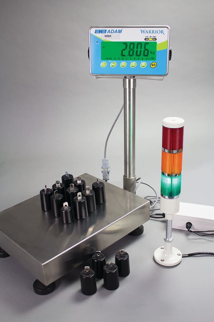 Adam Equipment - 3004013214 The relay box is an add-on for the AGB, AGF, Gladiator and AE 403a Indicator. When installed, it allows the checkweighing limits to trigger a voltage relay. Once the trigger is set, the relay box will open or close a switch. This allows the scales to drive other items such as a motor for filling, or lights to signal the users. The relay box includes input for power to help drive the relays. The light tower has 3 colors to let you know if your weight is over, under or within preset limits at a glance.
