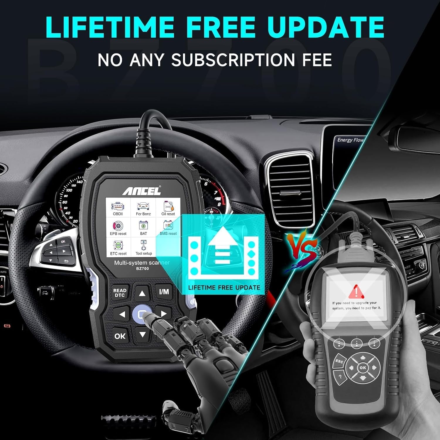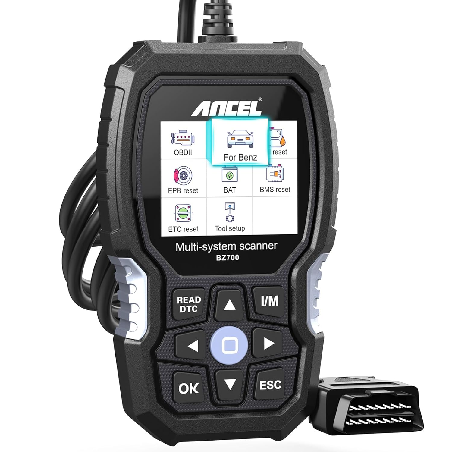 The BZ700 is a professional automotive diagnostic tool that provides comprehensive diagnostics for Mercedes-Benz, Sprinter, Smart and other 12 V OBD2-equipped vehicles. It scans multiple vehicle systems including engine, transmission, ABS, airbag and more to help quickly identify and clear faults, support maintenance tasks and monitor vehicle health.