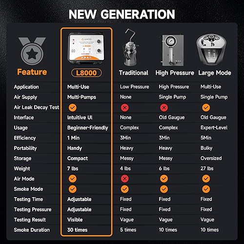 This advanced automotive smoke machine leak detector is designed for professional technicians and DIY car enthusiasts to quickly and accurately find leaks in EVAP systems, turbo/intake systems, vacuum lines, exhaust, cooling systems, manifolds, brake boosters, and more. The built-in air pump, adjustable pressure settings, and full-color LCD display make diagnosing complex automotive leaks fast and efficient.