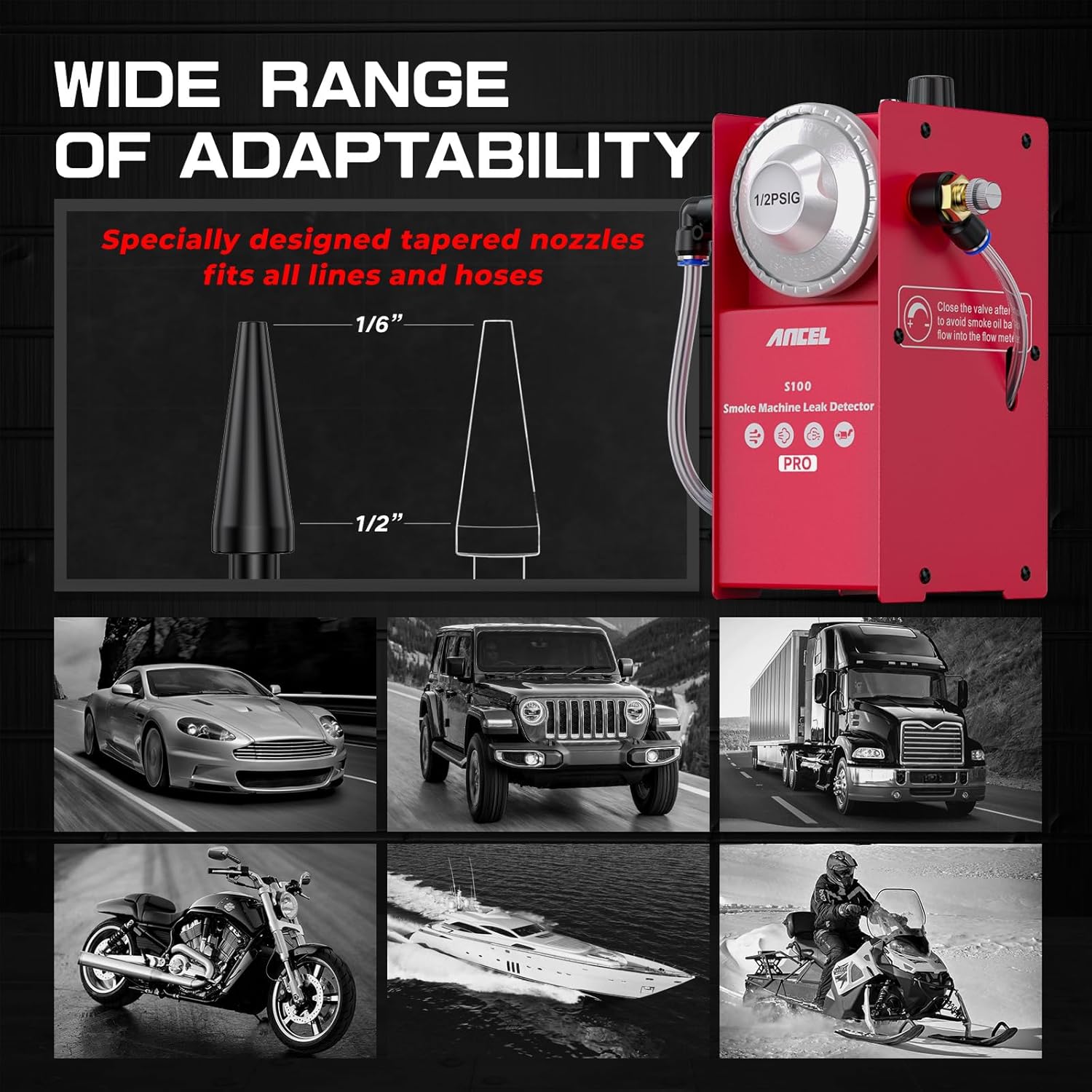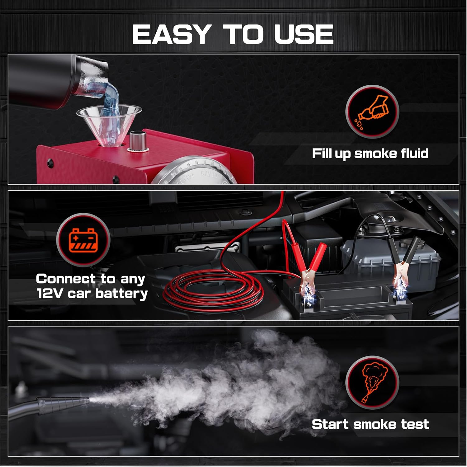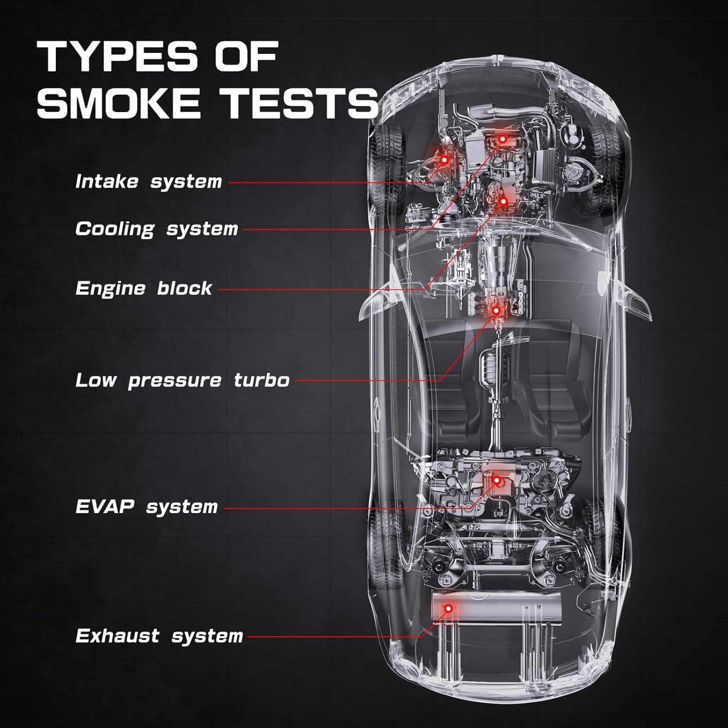 - Quickly detects EVAP, vacuum, intake, exhaust, and cooling system leaks