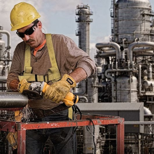 The DWE4222N 4.5" Small Angle Paddle Switch Angle Grinder with Brake and No-Lock On slows wheel 50% faster once trigger is released as compared to the DWE402 with DW4514 Wheel. The E-Clutch feature activates in less than a tenth of a second when a wheel pinch/stall event is detected. Includes Lanyard Ready(TM) connection point, One-Touch Guard and Dust Ejection System.
