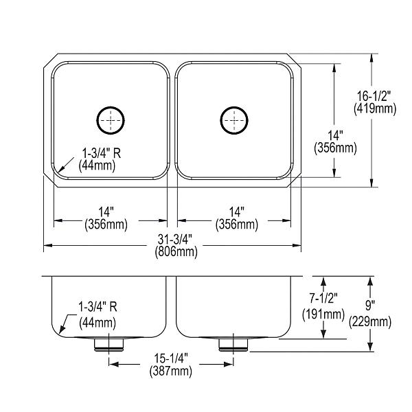 DimensionsL: 31-3/4",W: 16-1/2",H: 7-1/2"
