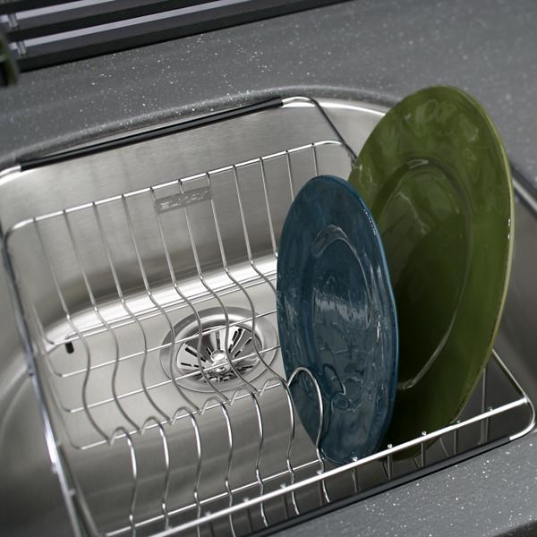 - INCLUDES: Removable stainless steel dish rack for air drying dishes.