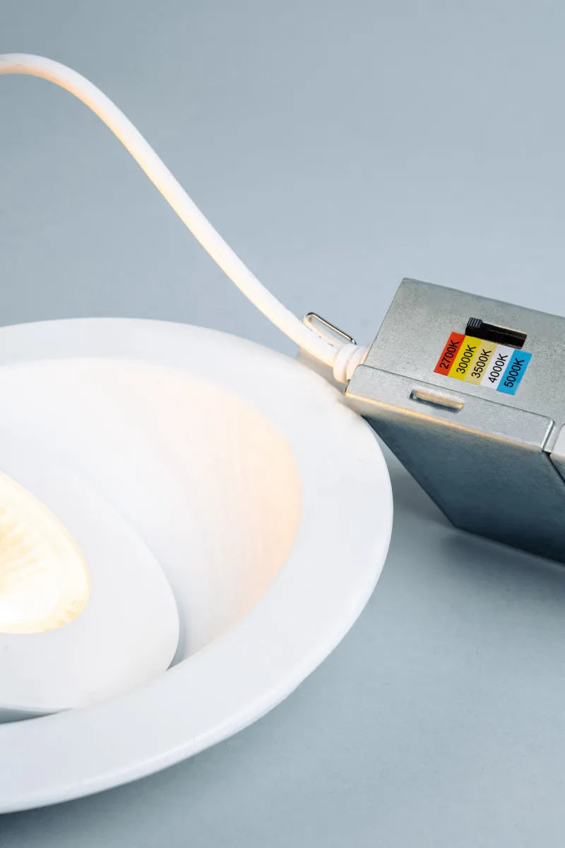 The Euri Lighting’s 4” Gimbal Downlight, 5CCT selectable, recessed downlight is designed to give you the option between 2700K/3000K/3500K/4000K/5000K all conveniently in one downlight. Its spring-action clips allow for easy, hassle-free installation with no need for housing, reducing maintenance worries. At 650 Lumens and 9 Watts (65 Watt equivalent) input power, the 4” gimbal downlight has an average of 50,000 hours of life and is ETL and T24 certified. The LED Downlight is IC Rated, recessed and best suited for low residential ceilings working on AC 120V. Its edge-lit LED technology guarantees a long life of uniform light distribution.
