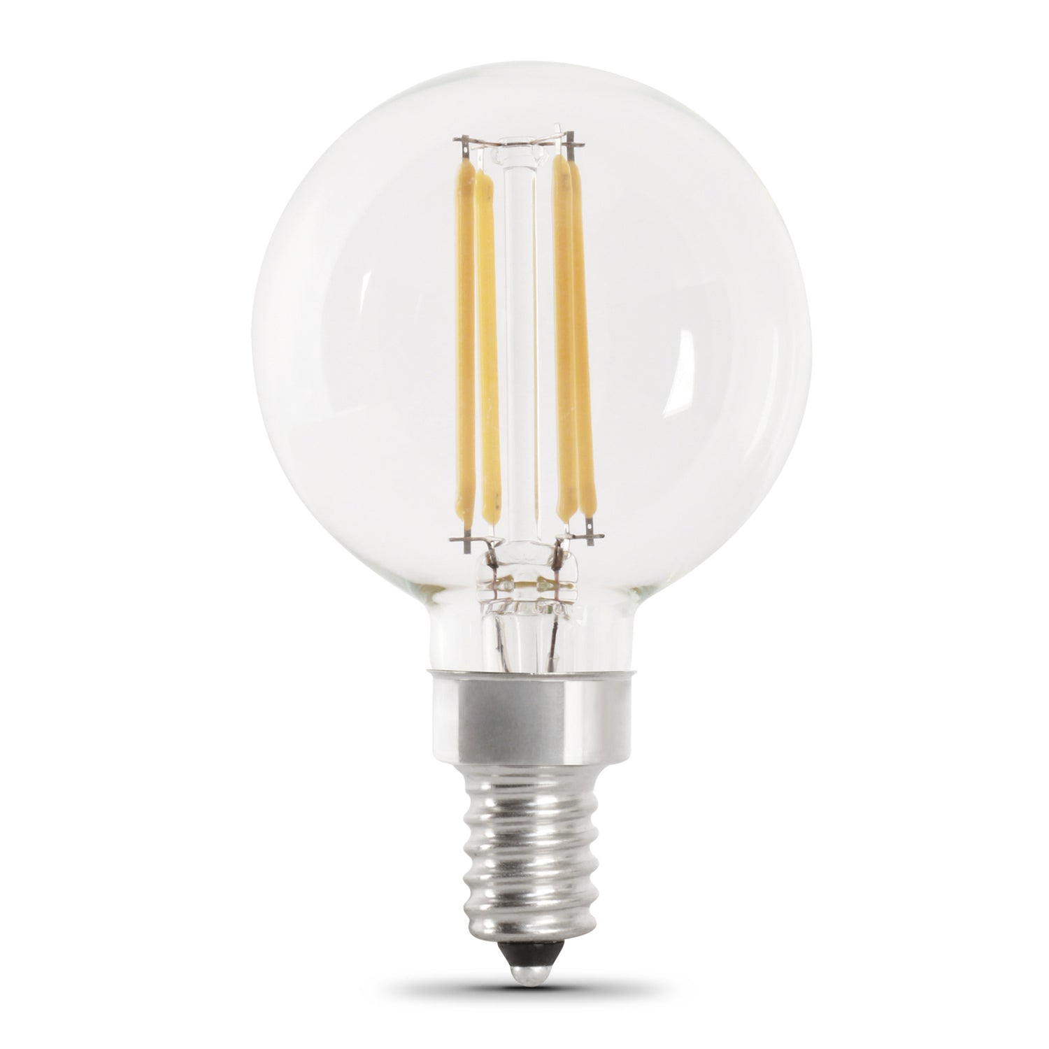 Feit Electric - BPG1660930CAFIL/2 Combine the vintage glass filament lighting look and feel with the advantages of modern LED technology with these stylish light bulbs from Feit Electric. Energy-efficient LEDs replace a 60-watt incadescent, producing a 3000K Bright White glow that gives the home a cozy feel. A G16 1/2 mini-globe design with exposed filament wrapped in frosted glass housing is ideal for chandelier fixtures and will enhance the décor of any room. Enhance 90+ CRI light makes colors vibrant and skin tones more natural, all while saving energy and lasting for decades.