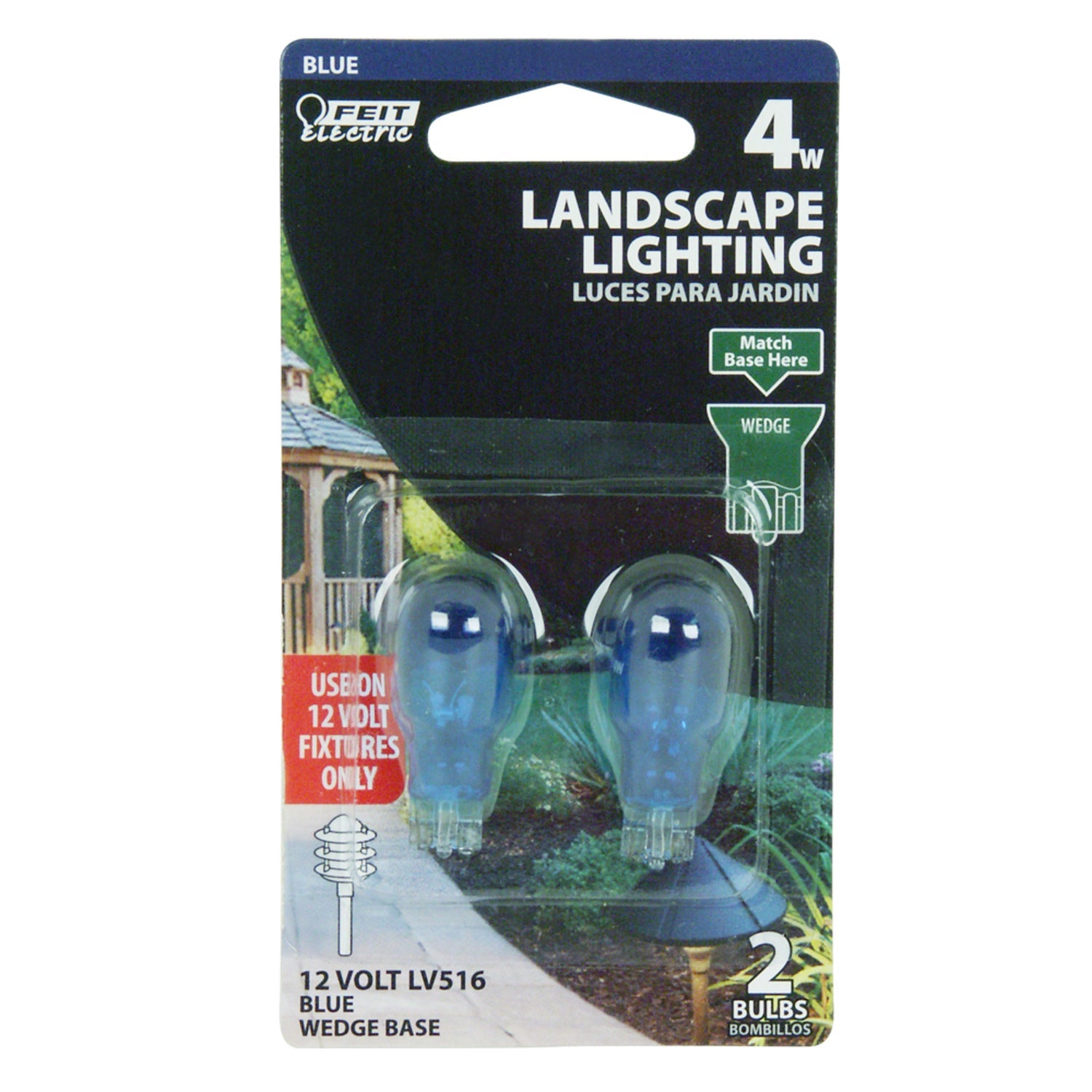 Feit Electric - BPLV516/B This two-pack of blue Feit Electric 4-watt T5 bulbs is perfect for landscape lighting and party applications. Each bulb has a wedge base for easy installation and an average life of 1,000 hours. Choose a dependable landscape bulb for your landscape lighting needs.