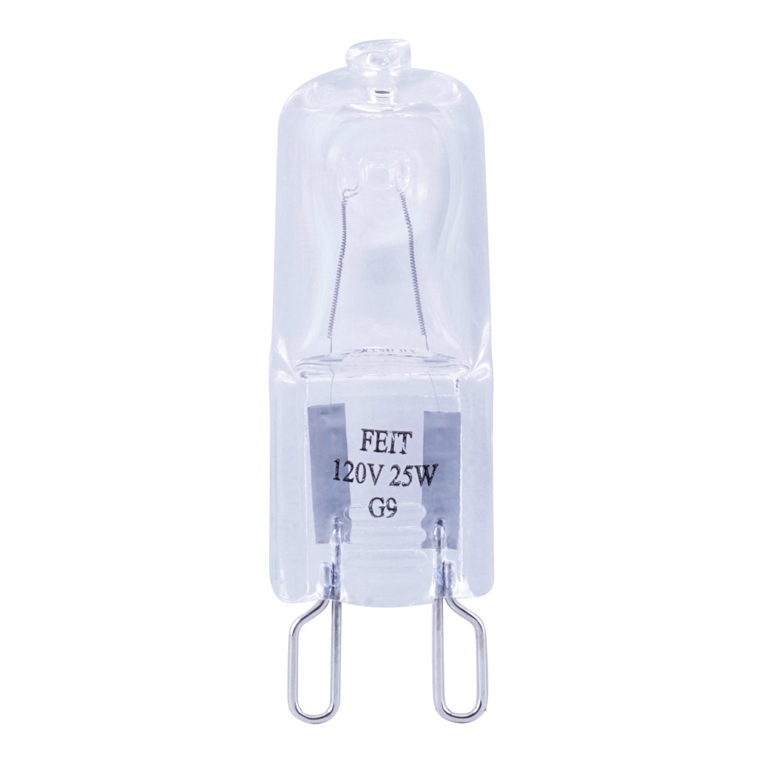 Feit Electric - BPQ25/G9/CAN The 25-Watt Halogen G9 Light Bulb from Feit Electric is designed to provide warm white light for your 120-volt fixtures in interior lighting applications. The clear, tubular-shaped bulb features a G9 bi-pin base and offers an average life of 2000 hours. This bulb is also dimmable for custom light levels.