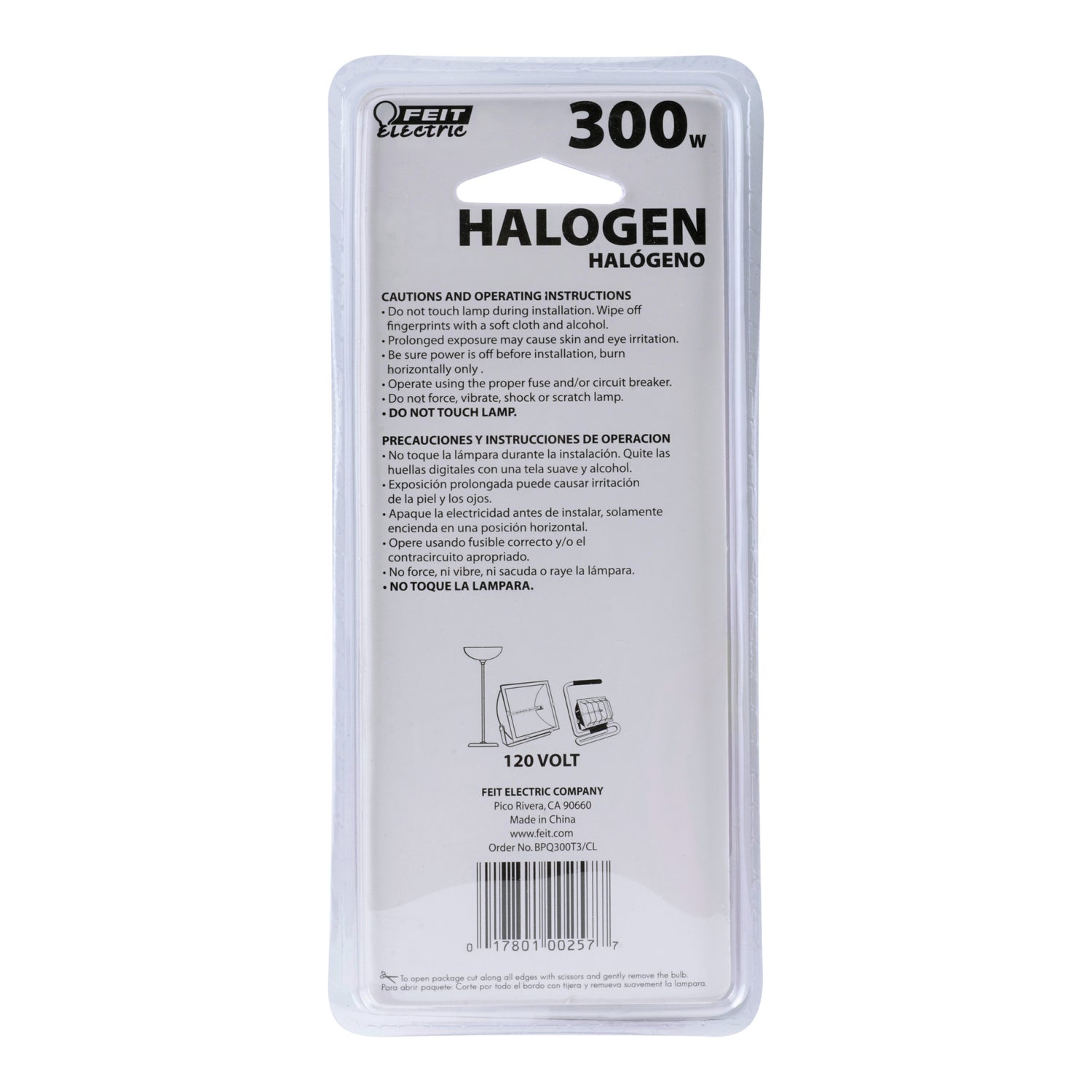 Feit Electric - BPQ300T3/CL Featuring pinched quartz tubes that are designed to hold the filaments secure, the 300-watt Rough Service Double-Ended Tube Halogen Light bulbs are recommended for use in interior and exterior 120-volt lighting applications. The bulbs emit 4500 lumens light output. 3000K Warm White light provides cozy, inviting light. These ultra-bright, dimmable bulbs are ideal for work lights, pool and spa, and outdoor security lighting. They offer an average life of 4,000 hours and include plated contacts that resist corrosion. Use Feit Electric BPQ300T3/CL halogen bulbs for bright, reliable light.