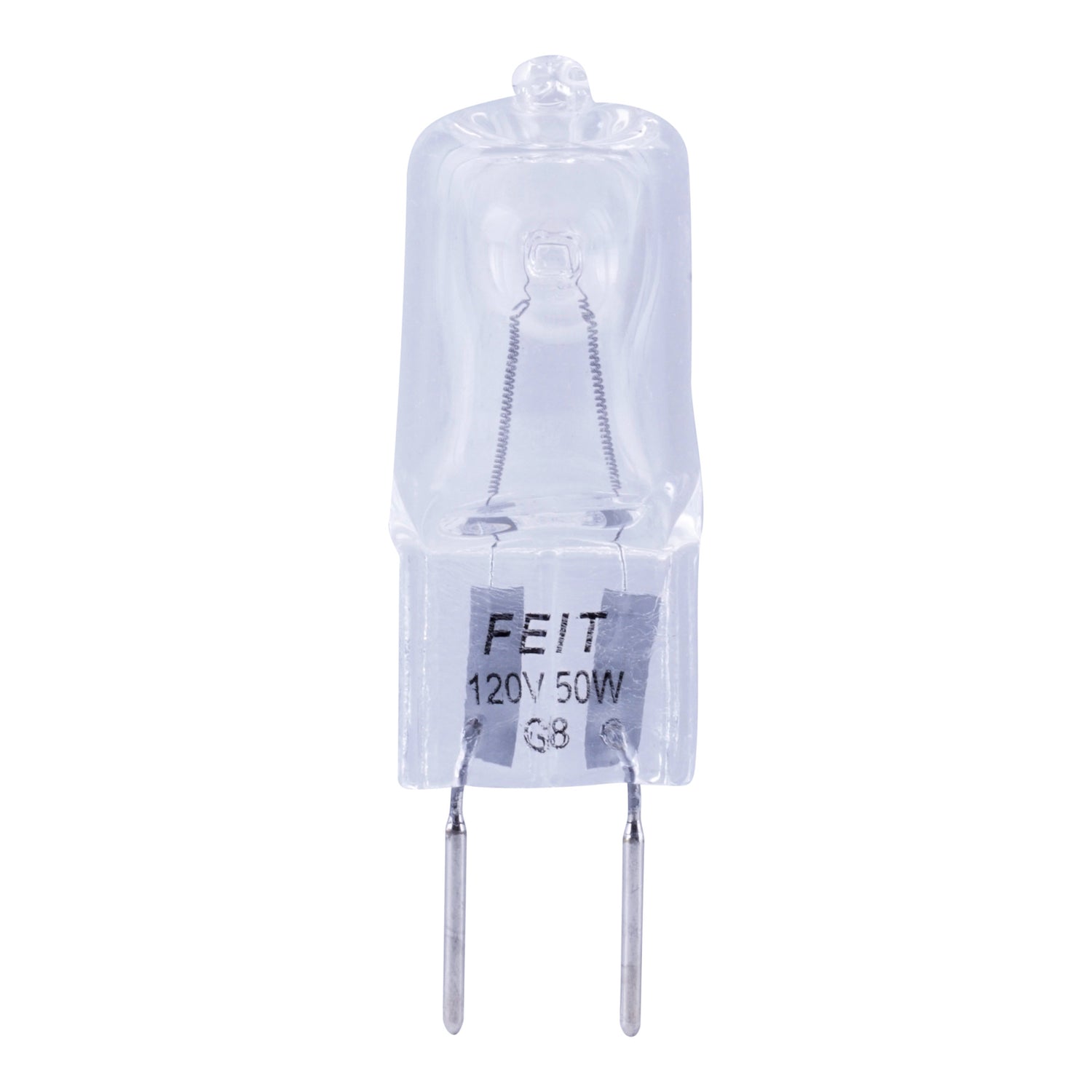 Feit Electric - BPQ50/G8/CAN Designed for use in 120-Volt fixtures only, the Feit Electric 50-watt T4 Bright White Halogen Light Bulb is a reliable replacement for traditional 2-pin G8 base bulbs. Our BPQ50/G8/CAN bulb produces a 3000K Bright White glow while using 50 watts, ideal for accent lighting, display lighting, task lighting, and desk lamps. The 600-lumen bulb is fully dimmable and lasts up to 2,000 hours. The estimated annual energy cost is only $6.02/year (based on 3 hours per day of use). Choose a dependable Feit Electric bulb for all your residential or commercial lighting needs.