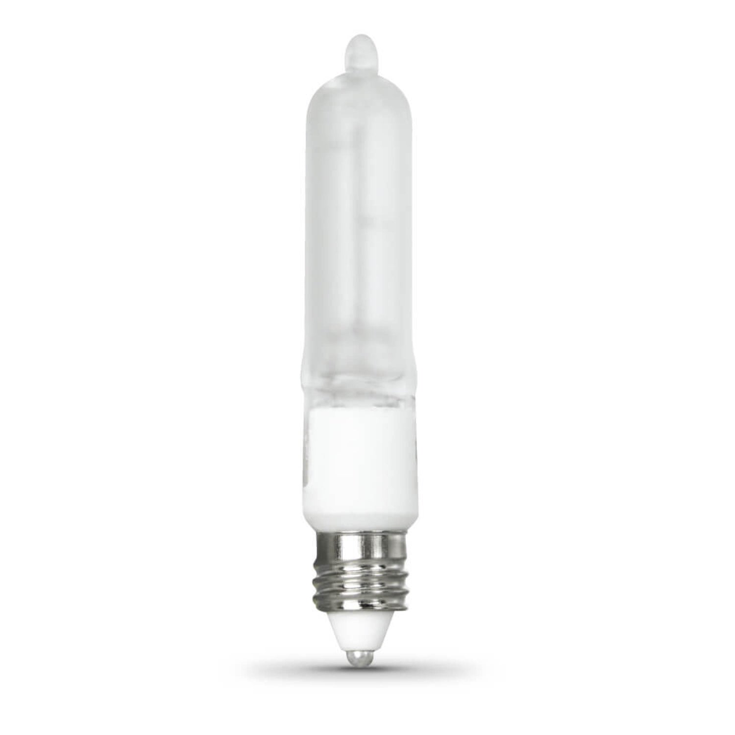 Feit Electric - BPQ75/CL/MC/RP The Feit Electric 75-Watt T4 Warm White Halogen Light Bulb is a reliable replacement for traditional mini candelabra base T4 bulbs. Our BPQ75/CL/MC/RP bulb produces a 3000K Warm White glow while using 75 watts, ideal for specialty decorative lighting, chandeliers, task lighting, and desk lamps. The 1050-lumen bulb is fully dimmable and lasts up to 2,000 hours. The estimated annual energy cost is only $9.03/year (based on 3 hours per day of use). Choose a dependable Feit Electric bulb for all your residential or commercial lighting needs.