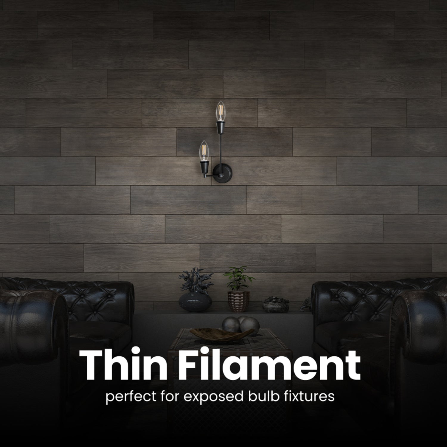 Feit Electric - CTC40950CATFIL/2 Feit Electric Thin Filament Torpedo B10 LED Bulbs let you enjoy all the benefits of advanced LED energy-saving technology with a high-CRI decorative bulb. Marry the feel and look of classic bulbs with the advantage of LED technology. Their stylish traditional design with thinner exposed filament encased in clear glass instantly livens up the decor of any room. A 5000K Daylight White light is perfect for reading, working on intricate projects, and seeing fine details. Use them in craft rooms, bathrooms, kitchens, laundry rooms, utility rooms and anywhere you desire invigorating light. A 90+ CRI brings out true colors making them look vibrant and skin tones look natural. These bulbs are fully dimmable giving you the ability to dim down when watching movies, having a romantic dinner, or up when you need to focus on other tasks such as homework. Use them in any fixture with a Candelabra E12 base socket such as chandeliers, wall sconces, coach lanterns and more. The CTC40950CATFIL/2 emits 300 lumens of light while using just 3.3 watts (40-watt equivalent) of electricity. Save up to 92% more energy than standard bulbs and get up to 15,000 hours/13.7 years of life. They have an estimated energy cost of only $0.40 per year. Create a long-lasting, energy-efficient beautiful glow that brightens your home and commercial space.