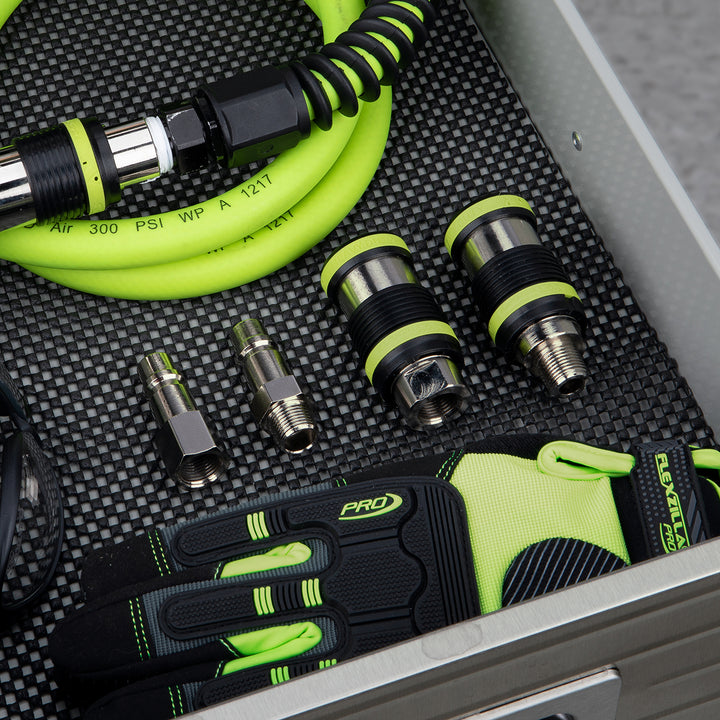 Flexzilla® Pro Heavy Duty Couplers and Plugs feature ZVR™ Technology, Zero Valve Restriction provides maximum CFM possible. Paired with quick, safe and easy connections, Flexzilla® Pro HD Couplers and Plugs are the best choice for maximum performance from your air tools.