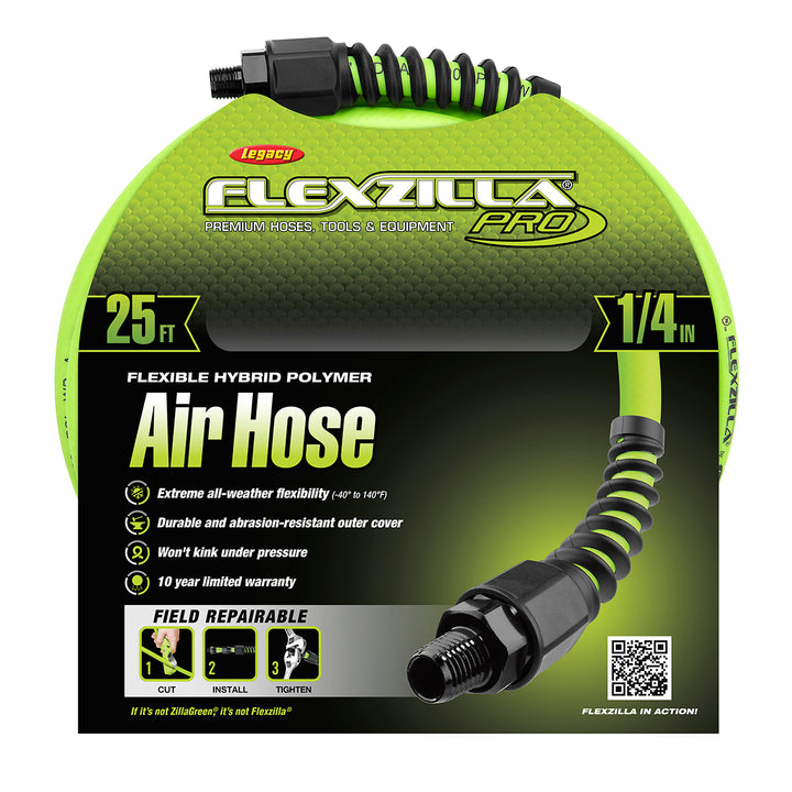 Flexzilla® Pro Field Repairable Air Hose features extreme all-weather flexibility, rugged durability and won’t kink under pressure. Its unique Flexible Hybrid Polymer material redefines flexibility. With reusable anodized aircraft aluminum fittings, the Flexzilla® Pro Air Hose can be repaired on the jobsite in a few simple steps.