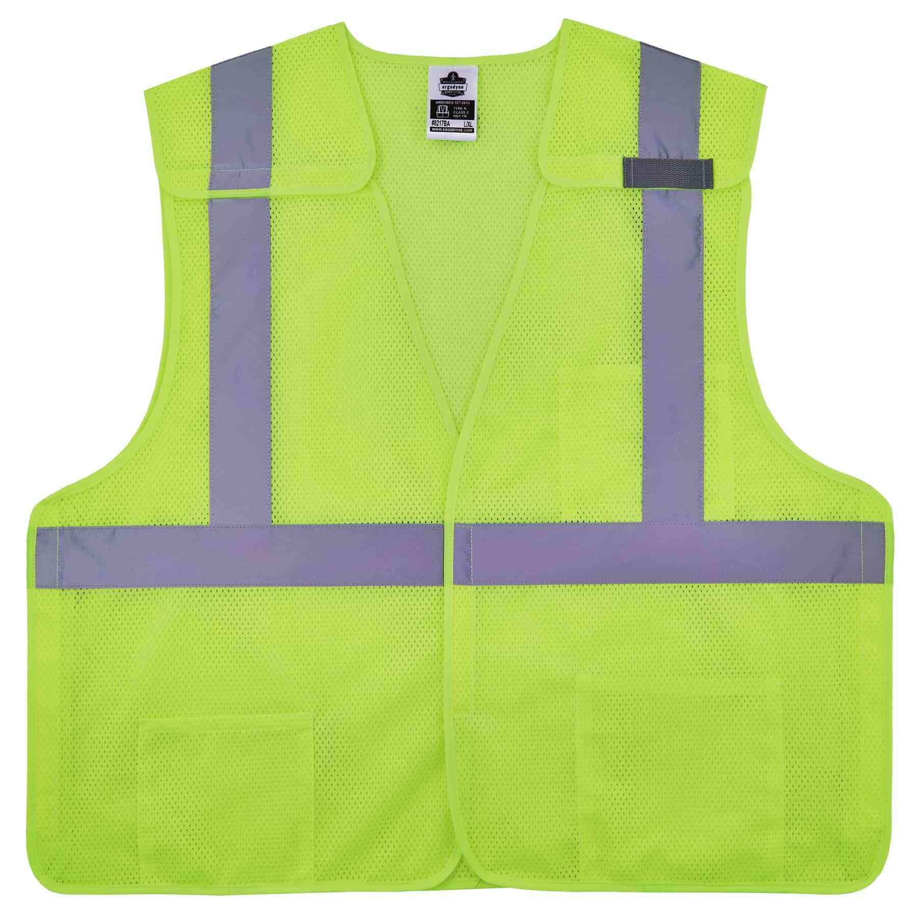 Ergodyne - Ei-21529 The GloWear® 8217BA Class 2 Hi-Vis 5-Point Breakaway Safety Vest is built with durable yet breathable ANSI/ISEA compliant polyester mesh and a 5-point breakaway design, for maximum visibility and protection against being caught in moving industrial equipment.