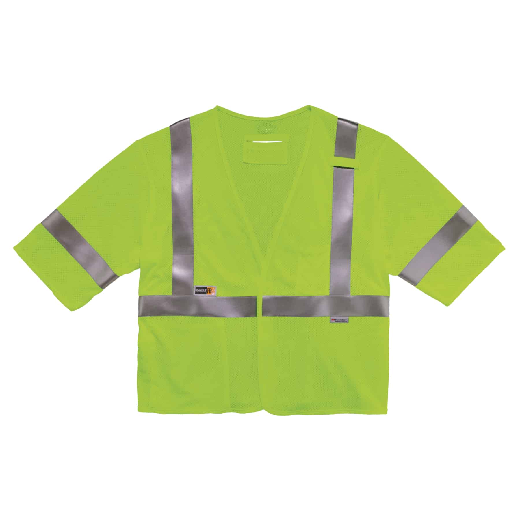 Ergodyne - Ei-22217 The GloWear® 8356FRHL Hi-Vis FR Safety Vest is a Type R Class 3 vest compliant to ASTM F1506 for flame resistance. Designed to be worn as part of a complete FR garment system, this ANSI-compliant mesh work vest is tested and certified to an ATPV 4.6 cal/cm2.