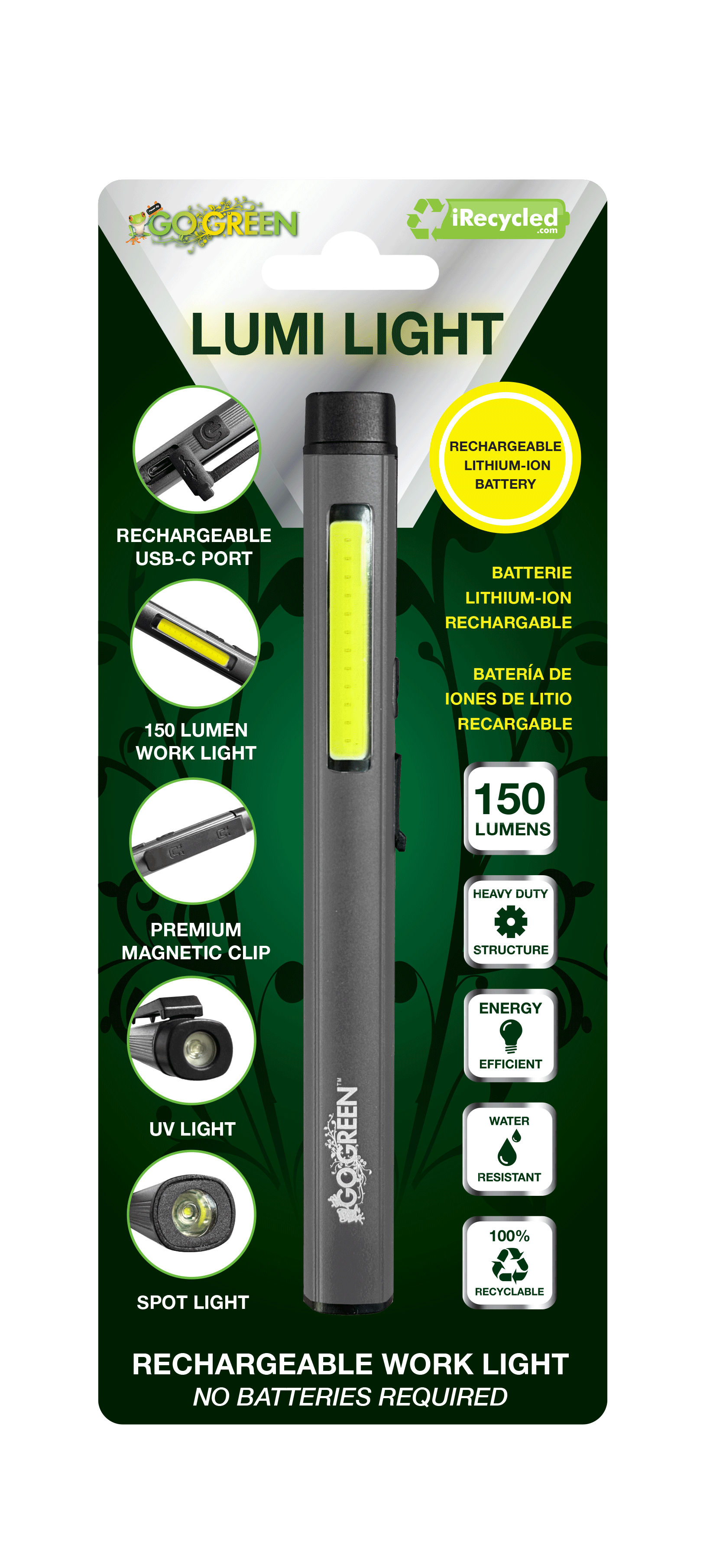 GoGreen Power GG-LUMI-RD LUMI FLASHLIGHT, 150 Lumens, Rechargeable Lithium-ion Battery w/Power Indicator