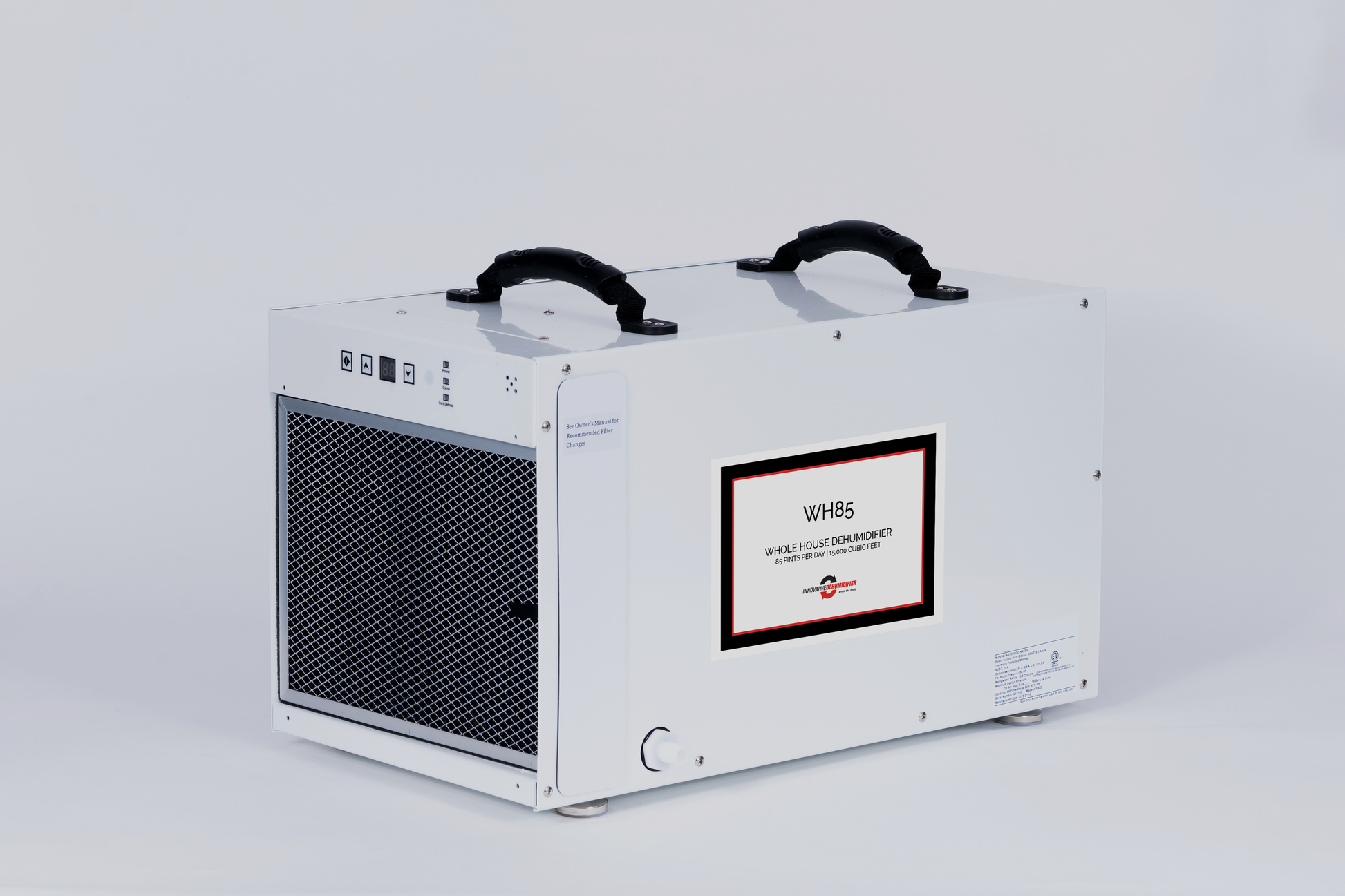 Innovative Dehumidifier - WH85 Professional Series Whole House dehumidifiers are compact, durable and efficient. They have a built-in digital humidity controller and are specifically designed to control excess moisture that contributes to poor indoor air quality, property damage, mold, comfort complaints, and possible liability risks. They can be used to condition living spaces, crawl spaces and other large spaces up to 15,000 cubic feet with an AHAM rated capacity (80F/60%RH) of 85 pints per day.