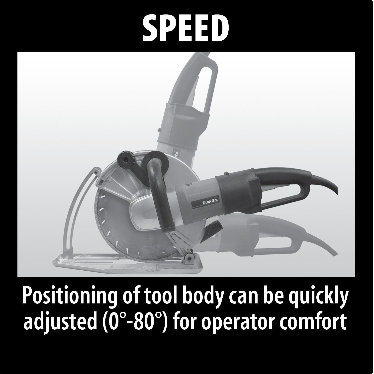 - Positioning of the tool body can be adjusted (0°-80°) for operator comfort; operates independently of cutting depth for convenience and efficiency