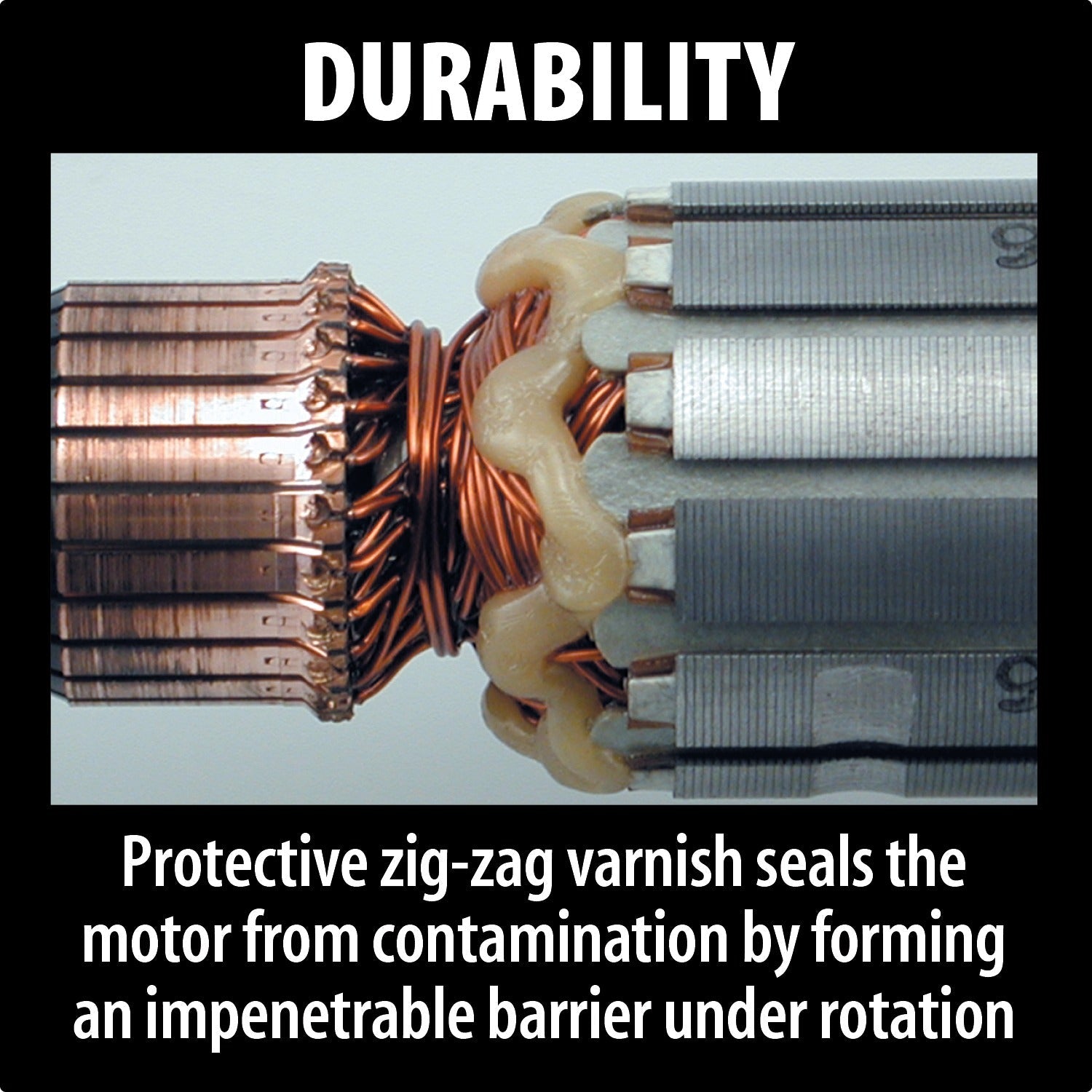 - Rubber shield helps keep debris away from operator and from entering the motor