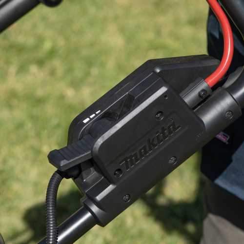 Makita - GML01SM Makita is expanding the line of cordless OPE to include the 40V max XGT® Brushless 21" Self-Propelled Commercial Lawn Mower. With no gas, emissions, oil mixing or pull starts, the 40V max XGT® Cordless Lawn Mower is a welcome solution for efficient grass cutting. Reduced maintenance lowers operating costs and minimizes downtime. The mower features a Makita-built brushless motor that delivers up to 2,800 RPM, a commercial grade steel deck, and a 3-in-1 design that allows for mulching, bagging, or rear discharge. Rear-wheel drive self-propelled technology provides improved traction and improved performance on incline slopes and uneven terrain. It also features large 9 wheels with steel ball bearings to provide a smoother drive with better maneuverability and increased durability.The mower can cut up to 3/5 of an acre in 54 minutes or less with two 40V XGT® 4.0Ah batteries. It is powered by one 40V XGT® with the ability to carry two batteries allowing the GML01SM extended run time using the Auto-Switching two-bay battery system. Convenience features include a rubberized soft grip handle bar for added comfort, a folding handle for compact upright storage, and a single lever that quickly adjusts cutting height from 1-1/4 to 4. It is equipped with a rear discharge cover with a mulching plug included. Quiet mode can be engaged which reduces noise by providing constant speed control. The GML01SM features Makita® Extreme Protection Technology (XPT,). XPT, is a protective seal inside the tool and is engineered for improved operation in harsh conditions by channeling water and dust from key internal components. It is IPX4-rated for weather-resistant construction and durability.The GML01SM is a kit that includes the Lawn Mower, two fast charging 40V max XGT® 4.0Ah Battery (BL4040), and an XGT® Rapid Charger with dual-fan design (DC40RC).XGT® is a system of equipment, tools, batteries, and chargers utilizing 40V max lithium-ion batteries. XGT® is engineered to deliver high power to take on high-demand applications, allowing users to completely transition to a cordless job site. XGT® is equipped with advanced brushless motor engineering, intelligent digital communication, and superior durability features to outpower, outsmart and outlast the rest.