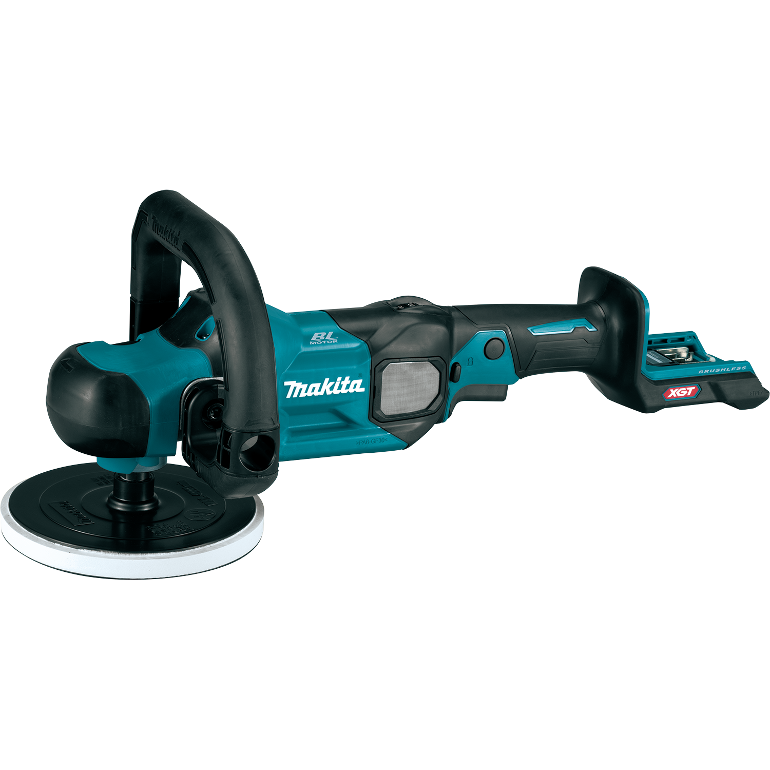 Makita - GVP01Z The 40V max XGT® Brushless 7" Polisher provides a cordless solution for a variety of polishing applications where mobility is important. It features a Makita-built brushless motor with a variable speed control trigger and dial offering 600 “ 2,200 RPM which enables the user to match the speed to the application. For optimum performance, it has constant speed control which automatically applies additional power under load. Convenience features include a rubberized soft grip that provides increased comfort on the job, a top handle above the pad that allows the user to apply varying amounts of pressure depending on the application and a rubberized over molding on the tool and battery position which is designed to help protect delicate surfaces from potential damage. The Polisher includes a soft start feature which suppresses the start-up reaction for smoother start-ups and longer gear life.XGT® is a system of equipment, tools, batteries, and chargers utilizing 40v max lithium-ion batteries. XGT® is engineered to deliver high power to take on high-demand applications, allowing users to completely transition to a cordless job site. XGT is equipped with advanced brushless motor engineering, intelligent digital communication, and superior durability features to outpower, outsmart and outlast the rest.