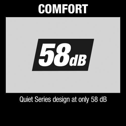 - Quiet Series design at only 58 dB for operator and crew comfort; ideal for indoor use