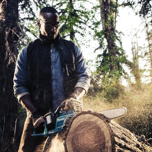 Makita - XCU04CM Landscapers and contractors are demanding more cordless alternatives to gas-powered outdoor power equipment. Makita is meeting demand with an expanding line of cordless OPE, including the 36V (18V X2) LXT® Brushless 16 Chain Saw (XCU04CM). With zero emissions, lower noise, and considerably less maintenance, the XCU04CM is a welcome solution for cutting and trimming applications. Its powered by two 18V LXT® 4.0Ah Batteries for maximum power, speed and run-time. And with the efficient Makita® outer rotor brushless motor with direct drive system, users get high power efficiency that is equivalent to a 32cc gas chain saw.