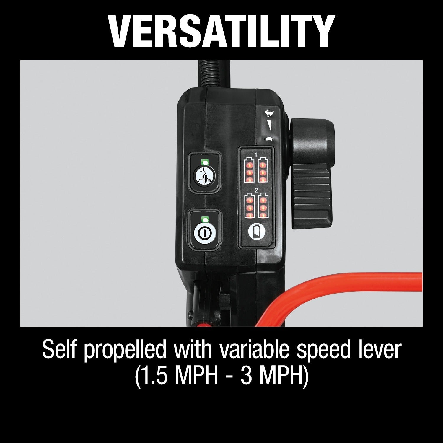 - VERSATILITY : Self-propelled with variable speed lever (1.5 MPH - 3 MPH)