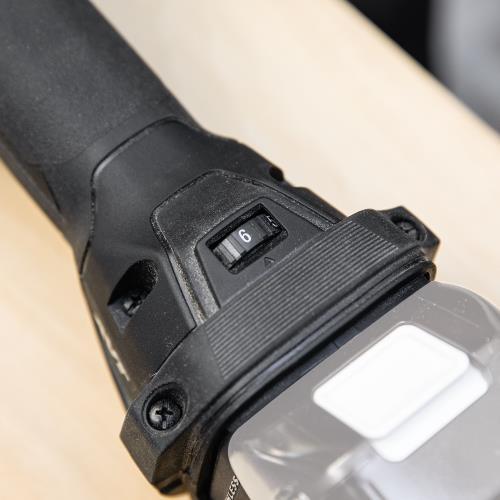 The multi-tool features variable speed control dial (10,000 “ 20,000 OPM) with soft-start so users can match the speed to the application. Its equipped with Anti-Vibration Technology (AVT®), an internal counterbalance system engineered to reduce vibration. It has a 3.6-degree oscillation angle for faster, more aggressive cutting and sanding. The small diameter barrel grip provides improved handling and a large on/off slide switch with lock-on button provides convenience.