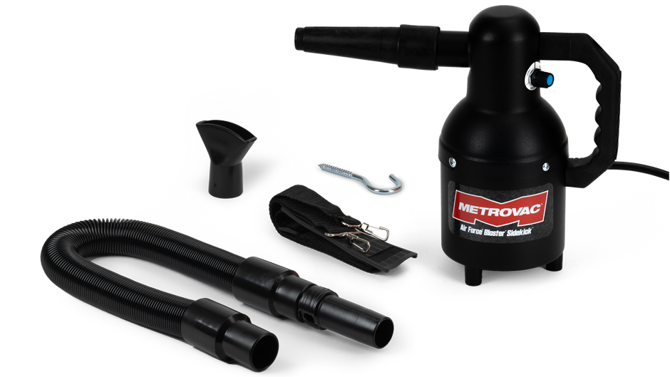 Whether you’re clearing dust from garments, prepping components for assembly, or maintaining a clean workspace *without* the hazards of high- pressure compressed air, the MetroVac Air Force® Blaster® Sidekick® Industrial Personnel Blow-Off System gives you safe, quiet and effective performance in a compact, durable package.