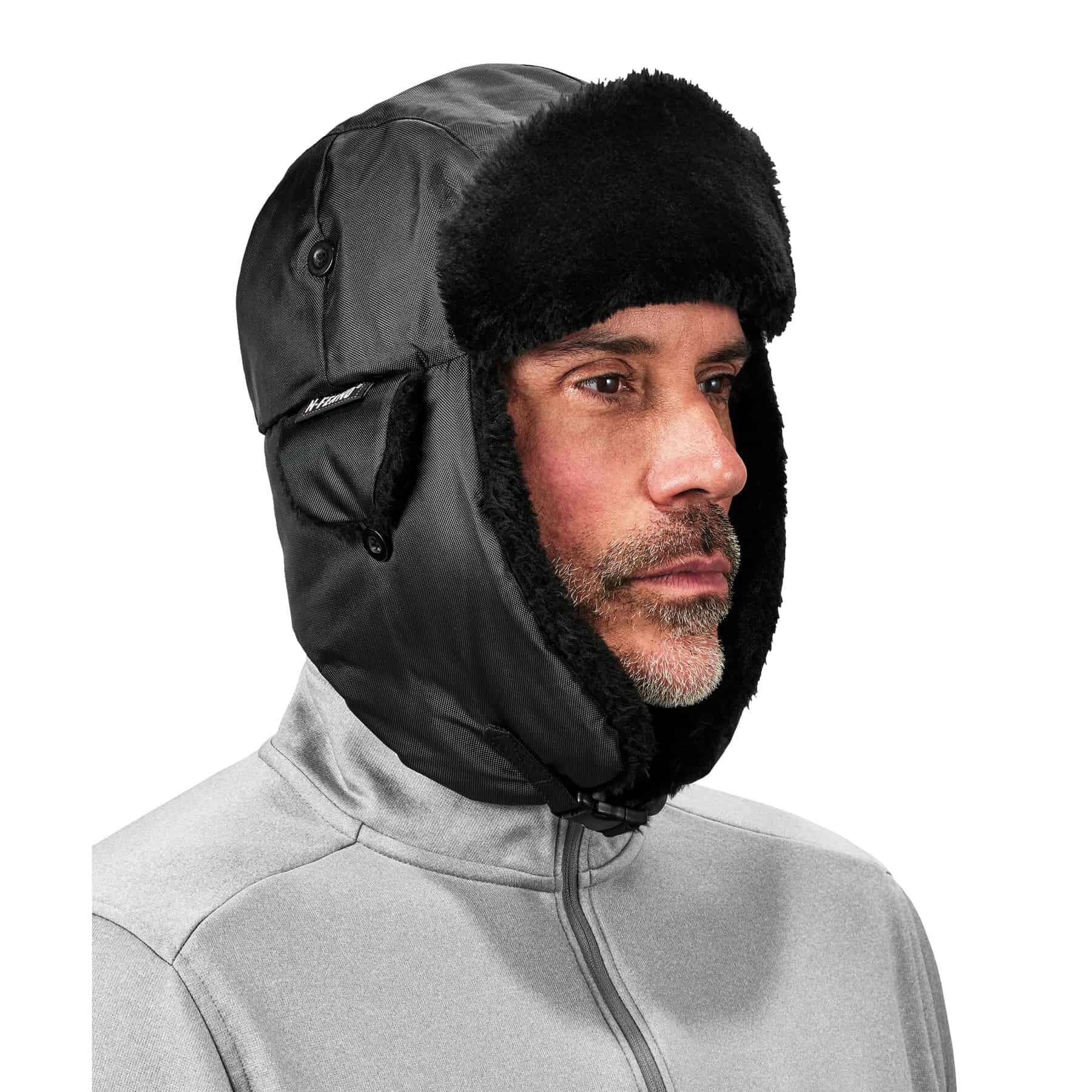 - EAR FLAPS Button-down for warmth or up for better hearing