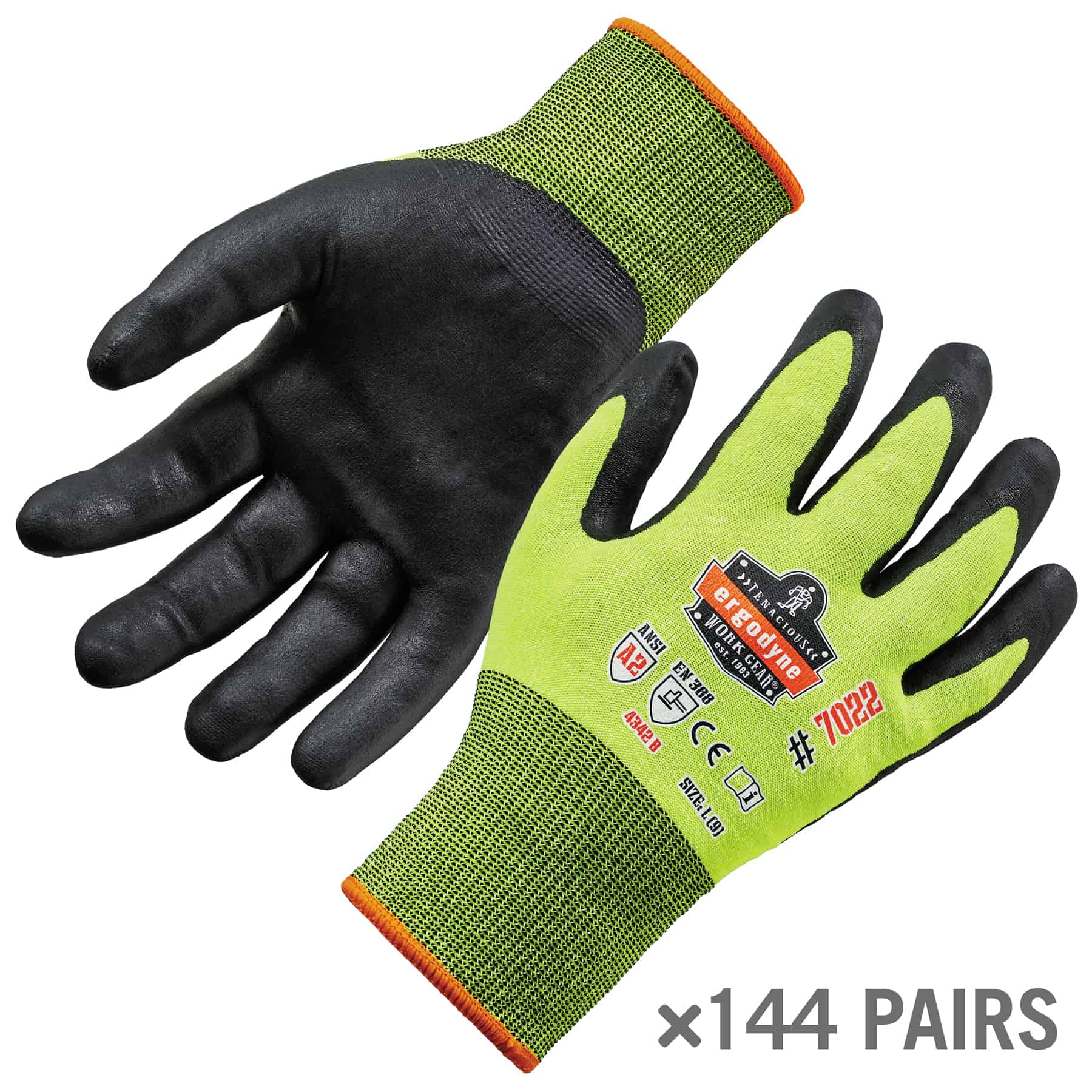 The ProFlex® 7022 Hi-Vis Nitrile-Coated Cut-Resistant Gloves with DSX dip technology are designed to provide unmatched grip in dry conditions. The 18-gauge A2 cut protection liner offers cut, puncture, and abrasion resistance for the harshest work environments. These nitrile-coated gloves also feature ANSI level 4 abrasion resistance for long wear.