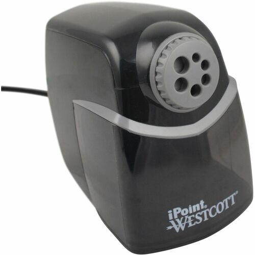 Westcott - ACM16681 Heavy-duty sharpener features a helical, 12-blade cutter for super-fast sharpening. Auto-stop technology prohibits you from oversharpening your writing utensils to prevent wasteful use. Extra-large shavings reservoir holds more at once to minimize trips to the wastebasket. Quiet operation prevents you from distracting others in quiet settings. Safety shutoff halts the motor when the shavings reservoir is removed for safe use. Adjustable dial accommodates up to six different pencil sizes. Sharpener is perfect for all school, home and office uses.