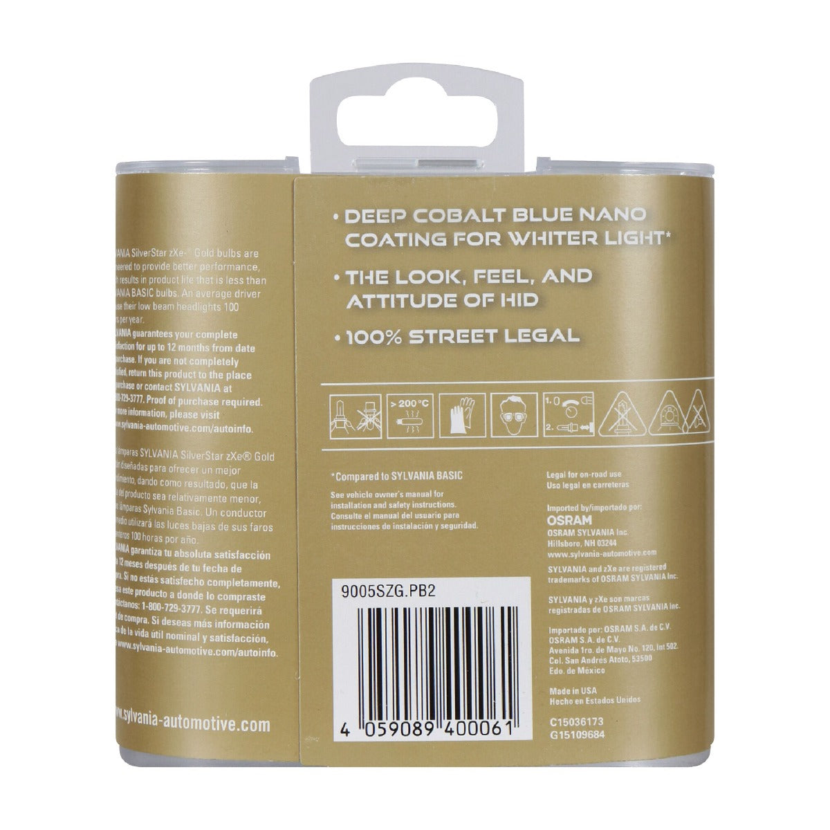 SYLVANIA SilverStar zXe® Gold are the whitest halogen headlight bulbs offered in our premium halogen collection. SilverStar zXe Gold bulbs are made to turn heads with its premier style. SYLVANIA's proprietary Xenon halogen gas technology paired with a cobalt blue coating delivers a crisp white light that transforms the look of your car's low and high beam headlights without compromising on safety.