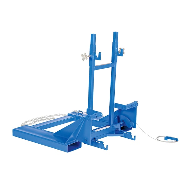 Save time and reduce work-related injuries caused by lifting and dumping heavy waste containers. This innovative Fork Truck mounted trash can dumper will allow a fork truck driver to lift and dump refuse containers without ever leaving the seat of the fork truck! Secure dumper to fork truck with safety chain and run cable to driver's seat. Align trash can with dumper and lock into place. Once locked in place, transport trash can to refuse container, align, and pull chain to dump refuse container contents. Steel construction for years of dependable use.
