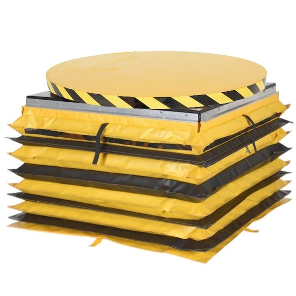Manual rotation and powered lift/lower turntable is ideal for commercial and industrial applications. This unit allows the user to transfer products from work space to work space, while holding an ergonomically friendly position. Compact, economical and easy to use. The 43-5/8 diameter top can be rotated 360 degrees for improved packaging and handling capabilities. Heavy duty/high quality steel construction. Power supply is 115V, 1-phase. Durable powder coat finish.