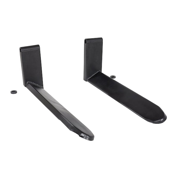 Picking up and moving round items on standard flat forks is often difficult and always dangerous. Now, with a fork set tilted to the center of the lifting unit, that difficulty is diminished. The inclined design of the forks creates a more stable lifting experience that limits movement and jostling of the products. Forks are constructed of steel and are simple to attach for immediate use. Powder coat finish diminishes chances of possible product abrasion and adds a baked in toughness.