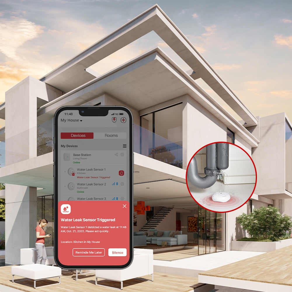- Enhance Your Coverage: The wide-range open-air transmission of 1,640 ft (500 m) allows the base station to maintain a stable connection with water leak detectors. This makes the kit suitable for all homes, even a multi-story home.